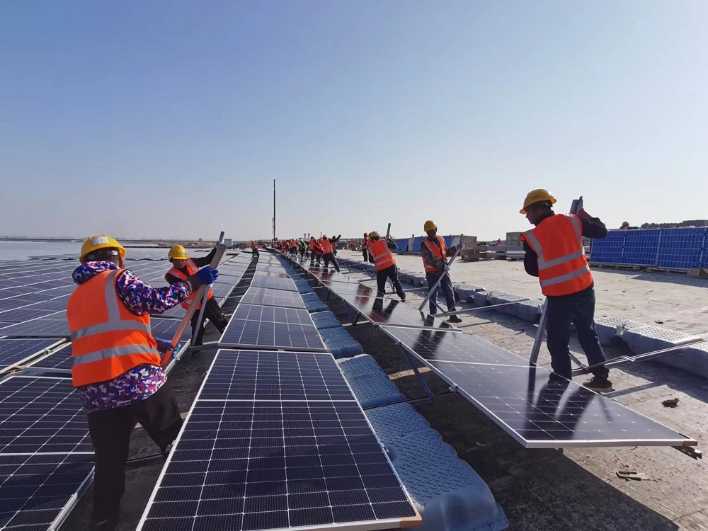 淮北礦業(yè)集團(tuán)加快發(fā)展光伏“綠電”戰(zhàn)新產(chǎn)業(yè)補(bǔ)鏈項(xiàng)目。在面積達(dá)94公頃的袁店一礦84兆瓦集中式水面光伏項(xiàng)目現(xiàn)場,120名職工分成6個班組,從南北兩岸正加快施工。“項(xiàng)目建成后,平均每年提供綠色電能9311萬千瓦時,相對火力發(fā)電,每年節(jié)省標(biāo)煤2.84萬噸,相應(yīng)減少排放二氧化碳7.58萬噸。”該光伏項(xiàng)目建設(shè)負(fù)責(zé)人秦忠原介紹。