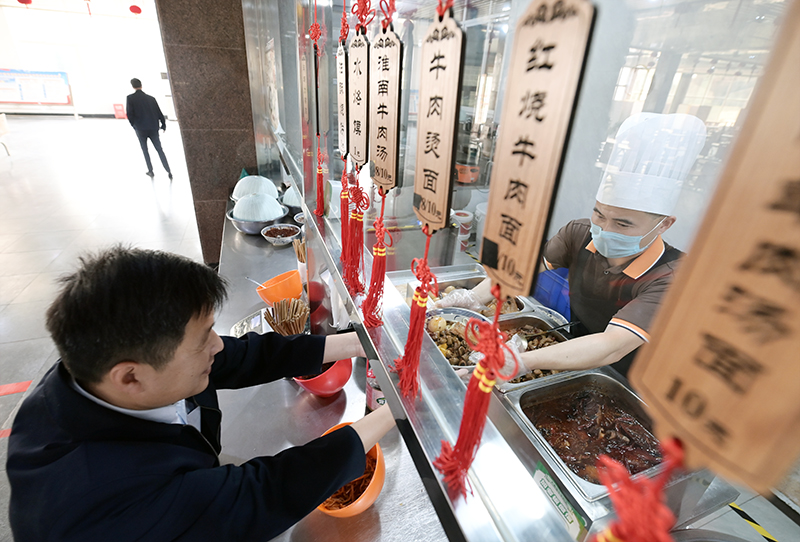 孫疃礦引進(jìn)專業(yè)化餐飲公司,食堂管理規(guī)范、物美價(jià)廉,提高了職工的就餐體驗(yàn)。(陳更 攝)