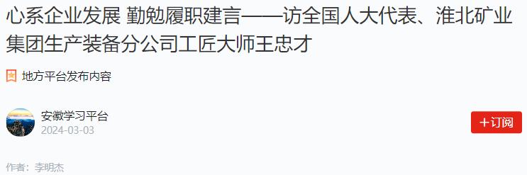 臨近全國兩會,全國人大代表、淮北礦業集團生產裝備分公司工匠大師王忠才的建議基本定稿。“今年還是關注企業發展,畢竟我是來自企業一線的代表。”他說。
